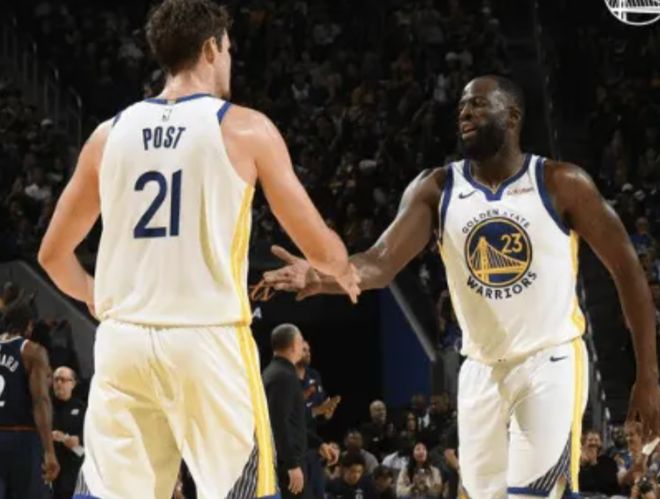 第四節(jié)決戰(zhàn),波斯特弧頂壓哨三分強(qiáng)投命中,庫里場(chǎng)邊抱頭慶祝,巴特勒加速突破壓哨拋投再打進(jìn),勇士已領(lǐng)先到23分。快船提前換上全替補(bǔ)陣容,比賽再無懸念,最終,勇士98-79大勝快船19分,豪取4連勝。