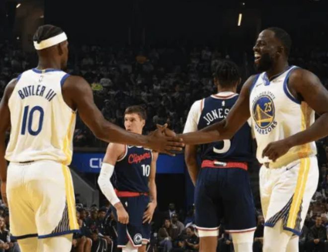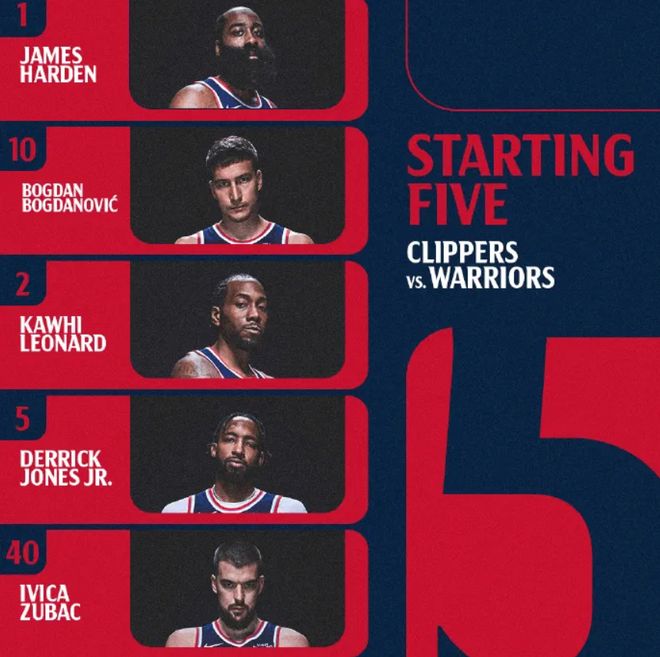 今天比賽,首發(fā)陣容方面,勇士隊(duì)這邊,科爾排出的最新首發(fā)五人組為:斯蒂芬-庫里、喬納森-庫明加、吉米-巴特勒、昆滕-波斯特、德雷蒙德-格林;快船隊(duì)這邊,全員可以出戰(zhàn),首發(fā)陣容則為:詹姆斯-哈登、波格丹-波格丹諾維奇、科懷-倫納德、小德里克-瓊斯、伊維察-祖巴茨。